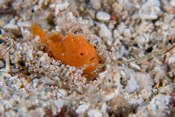 Recently, we have had an influx of one of our most popular underwater critters – frogfish. These bizarre blob like fish are always a hit among guests, and while they may not be the most attractive fish that can be found around Siladen, with their amazing camouflage, poor swimming ability, and amazing hunting tactics, they