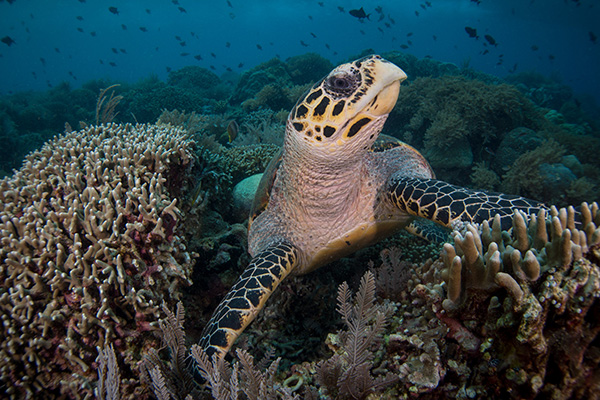 Bunaken Marine Park is most well known for its abundance of macro life. But aside from the tiny critters photographers love so much, we also have an unusually high number of turtles living here. It is not uncommon to spot as many as 20 turtles during a single dive on one of the walls surrounding